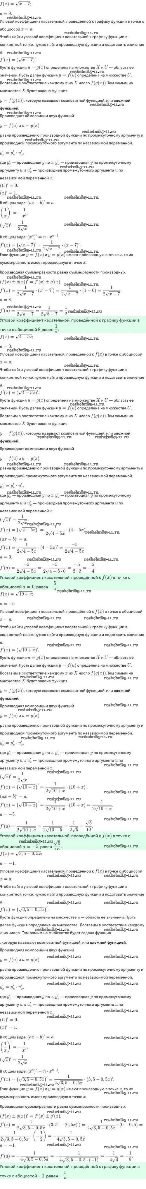 Готовая домашняя работа с ответами по Алгебре за 10 класс Мордкович, Семёнов, Звавич, Корешкова, Мишустина Задачник Базовый и углубленный уровень Мнемозина 2017 ФГОС - §43. Уравнение касательной к графику функции 43.4