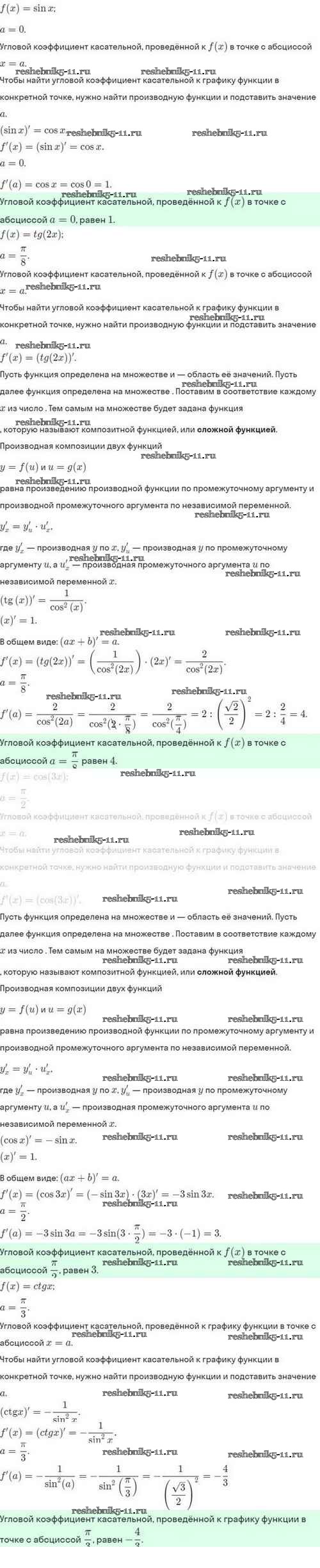 Готовая домашняя работа с ответами по Алгебре за 10 класс Мордкович, Семёнов, Звавич, Корешкова, Мишустина Задачник Базовый и углубленный уровень Мнемозина 2017 ФГОС - §43. Уравнение касательной к графику функции 43.5
