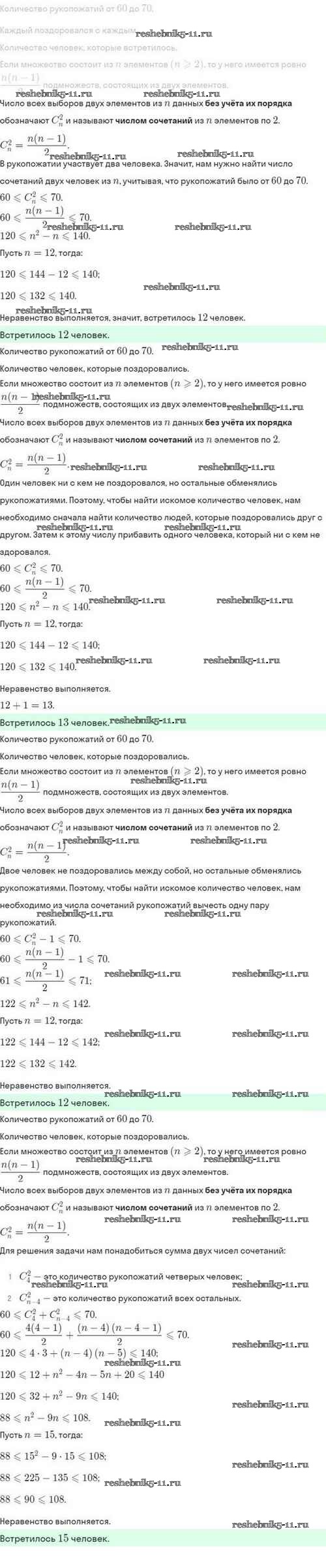 Готовая домашняя работа с ответами по Алгебре за 10 класс Мордкович, Семёнов, Звавич, Корешкова, Мишустина Задачник Базовый и углубленный уровень Мнемозина 2017 ФГОС - §48. Выбор нескольких элементов. Биноминальные коэффициенты 48.1