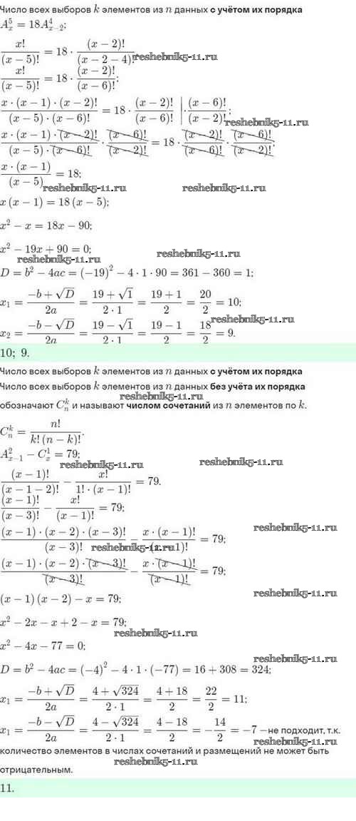 Готовая домашняя работа с ответами по Алгебре за 10 класс Мордкович, Семёнов, Звавич, Корешкова, Мишустина Задачник Базовый и углубленный уровень Мнемозина 2017 ФГОС - §48. Выбор нескольких элементов. Биноминальные коэффициенты 48.11