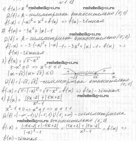 Готовая домашняя работа с ответами по Алгебре за 10 класс Мерзляк, Номировский, Полонский, Якир Учебник Алгоритм успеха Базовый уровень Вентана-граф 2022 ФГОС - §1. Наибольшее и наименьшее значения функции. Чётные и нечётные функции 1.12