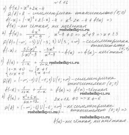Готовая домашняя работа с ответами по Алгебре за 10 класс Мерзляк, Номировский, Полонский, Якир Учебник Алгоритм успеха Базовый уровень Вентана-граф 2022 ФГОС - §1. Наибольшее и наименьшее значения функции. Чётные и нечётные функции 1.16