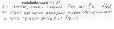 Готовая домашняя работа с ответами по Алгебре за 10 класс Мерзляк, Номировский, Полонский, Якир Учебник Алгоритм успеха Базовый уровень Вентана-граф 2022 ФГОС - §1. Наибольшее и наименьшее значения функции. Чётные и нечётные функции 1.27