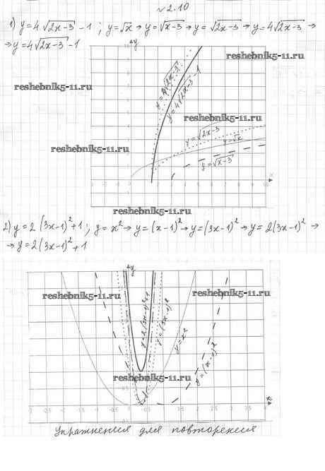 Готовая домашняя работа с ответами по Алгебре за 10 класс Мерзляк, Номировский, Полонский, Якир Учебник Алгоритм успеха Базовый уровень Вентана-граф 2022 ФГОС - §2. Построение графиков функций с помощью геометрических преобразований 2.10