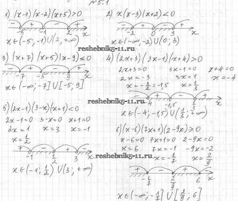 Готовая домашняя работа с ответами по Алгебре за 10 класс Мерзляк, Номировский, Полонский, Якир Учебник Алгоритм успеха Базовый уровень Вентана-граф 2022 ФГОС - §5. Метод интервалов 5.1