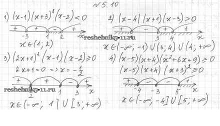 Готовая домашняя работа с ответами по Алгебре за 10 класс Мерзляк, Номировский, Полонский, Якир Учебник Алгоритм успеха Базовый уровень Вентана-граф 2022 ФГОС - §5. Метод интервалов 5.10