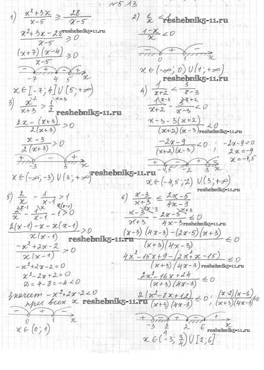 Готовая домашняя работа с ответами по Алгебре за 10 класс Мерзляк, Номировский, Полонский, Якир Учебник Алгоритм успеха Базовый уровень Вентана-граф 2022 ФГОС - §5. Метод интервалов 5.13