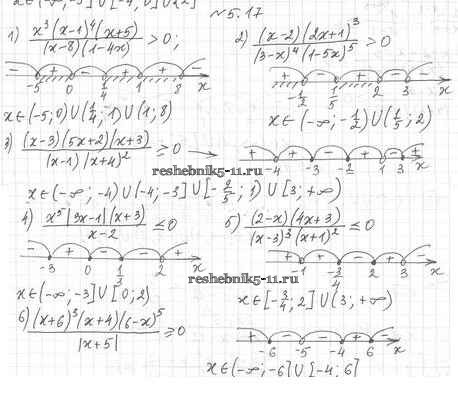Готовая домашняя работа с ответами по Алгебре за 10 класс Мерзляк, Номировский, Полонский, Якир Учебник Алгоритм успеха Базовый уровень Вентана-граф 2022 ФГОС - §5. Метод интервалов 5.17