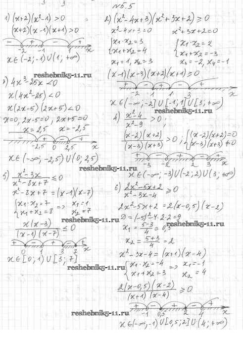 Готовая домашняя работа с ответами по Алгебре за 10 класс Мерзляк, Номировский, Полонский, Якир Учебник Алгоритм успеха Базовый уровень Вентана-граф 2022 ФГОС - §5. Метод интервалов 5.5