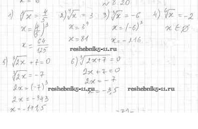 Готовая домашняя работа с ответами по Алгебре за 10 класс Мерзляк, Номировский, Полонский, Якир Учебник Алгоритм успеха Базовый уровень Вентана-граф 2022 ФГОС - §8. Определение корня n-й степени. Функция у= n√x 8.20