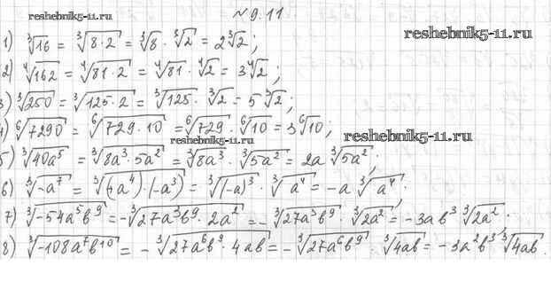 Готовая домашняя работа с ответами по Алгебре за 10 класс Мерзляк, Номировский, Полонский, Якир Учебник Алгоритм успеха Базовый уровень Вентана-граф 2022 ФГОС - §9. Свойства корня n-й степени 9.11