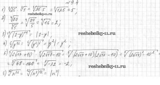 Готовая домашняя работа с ответами по Алгебре за 10 класс Мерзляк, Номировский, Полонский, Якир Учебник Алгоритм успеха Базовый уровень Вентана-граф 2022 ФГОС - §9. Свойства корня n-й степени 9.4
