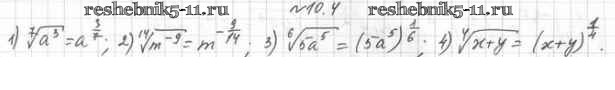 Готовая домашняя работа с ответами по Алгебре за 10 класс Мерзляк, Номировский, Полонский, Якир Учебник Алгоритм успеха Базовый уровень Вентана-граф 2022 ФГОС - §10. Определение и свойства степени с рациональным показателем 10.4