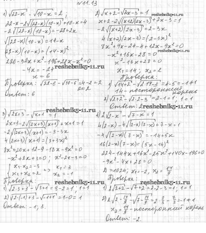 Готовая домашняя работа с ответами по Алгебре за 10 класс Мерзляк, Номировский, Полонский, Якир Учебник Алгоритм успеха Базовый уровень Вентана-граф 2022 ФГОС - §11. Иррациональные уравнения 11.13