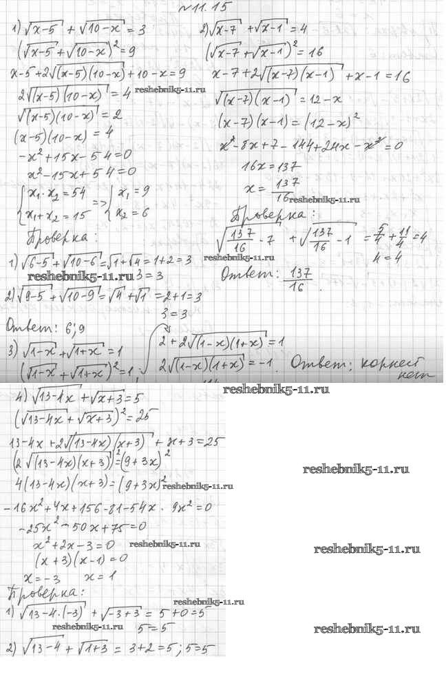 Готовая домашняя работа с ответами по Алгебре за 10 класс Мерзляк, Номировский, Полонский, Якир Учебник Алгоритм успеха Базовый уровень Вентана-граф 2022 ФГОС - §11. Иррациональные уравнения 11.15