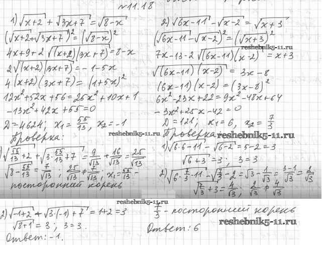Готовая домашняя работа с ответами по Алгебре за 10 класс Мерзляк, Номировский, Полонский, Якир Учебник Алгоритм успеха Базовый уровень Вентана-граф 2022 ФГОС - §11. Иррациональные уравнения 11.18