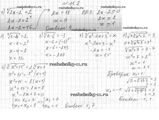 Готовая домашняя работа с ответами по Алгебре за 10 класс Мерзляк, Номировский, Полонский, Якир Учебник Алгоритм успеха Базовый уровень Вентана-граф 2022 ФГОС - §11. Иррациональные уравнения 11.2