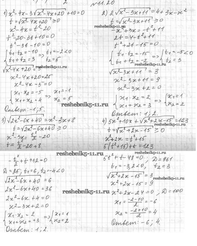 Готовая домашняя работа с ответами по Алгебре за 10 класс Мерзляк, Номировский, Полонский, Якир Учебник Алгоритм успеха Базовый уровень Вентана-граф 2022 ФГОС - §11. Иррациональные уравнения 11.20