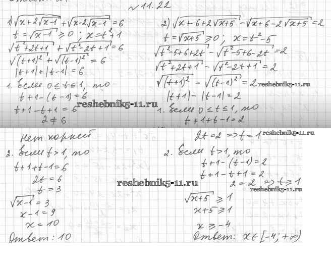 Готовая домашняя работа с ответами по Алгебре за 10 класс Мерзляк, Номировский, Полонский, Якир Учебник Алгоритм успеха Базовый уровень Вентана-граф 2022 ФГОС - §11. Иррациональные уравнения 11.22