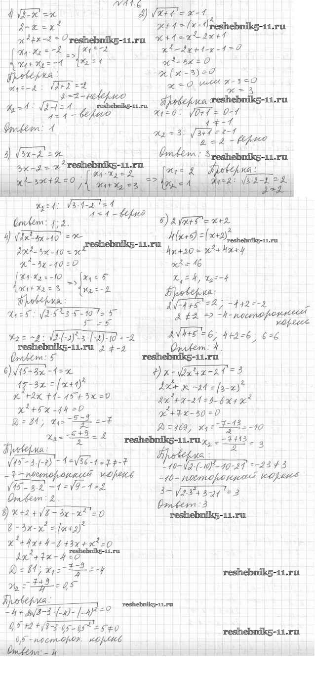 Готовая домашняя работа с ответами по Алгебре за 10 класс Мерзляк, Номировский, Полонский, Якир Учебник Алгоритм успеха Базовый уровень Вентана-граф 2022 ФГОС - §11. Иррациональные уравнения 11.6