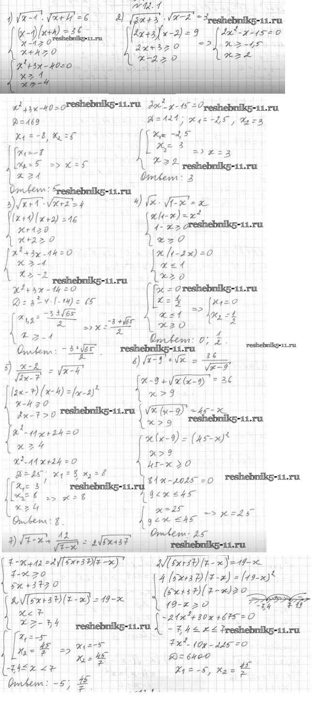 Готовая домашняя работа с ответами по Алгебре за 10 класс Мерзляк, Номировский, Полонский, Якир Учебник Алгоритм успеха Базовый уровень Вентана-граф 2022 ФГОС - §12. Иррациональные уравнения 12.1