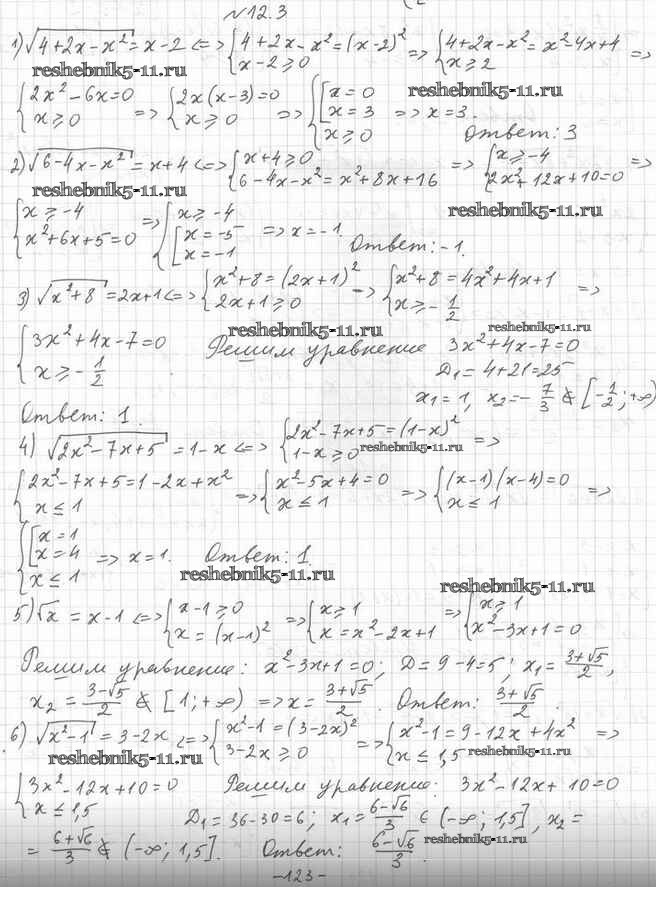 Готовая домашняя работа с ответами по Алгебре за 10 класс Мерзляк, Номировский, Полонский, Якир Учебник Алгоритм успеха Базовый уровень Вентана-граф 2022 ФГОС - §12. Иррациональные уравнения 12.3