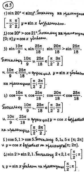 Готовая домашняя работа с ответами по Алгебре за 10 класс Мерзляк, Номировский, Полонский, Якир Учебник Алгоритм успеха Базовый уровень Вентана-граф 2022 ФГОС - §18. Свойства и графики функций y = sin x и y = cos x 18.9