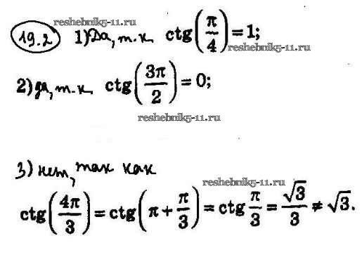 Готовая домашняя работа с ответами по Алгебре за 10 класс Мерзляк, Номировский, Полонский, Якир Учебник Алгоритм успеха Базовый уровень Вентана-граф 2022 ФГОС - §19. Свойства и графики функций y = tg x и y = ctg x 19.2