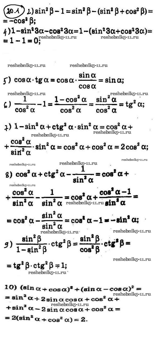 Готовая домашняя работа с ответами по Алгебре за 10 класс Мерзляк, Номировский, Полонский, Якир Учебник Алгоритм успеха Базовый уровень Вентана-граф 2022 ФГОС - §20. Основные соотношения между тригонометрическими функциями одного и того же аргумента 20.1