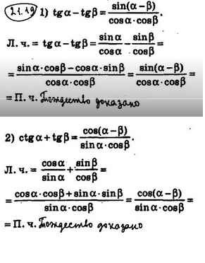 Готовая домашняя работа с ответами по Алгебре за 10 класс Мерзляк, Номировский, Полонский, Якир Учебник Алгоритм успеха Базовый уровень Вентана-граф 2022 ФГОС - §21. Формулы сложения 21.19