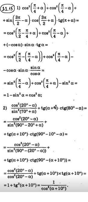 Готовая домашняя работа с ответами по Алгебре за 10 класс Мерзляк, Номировский, Полонский, Якир Учебник Алгоритм успеха Базовый уровень Вентана-граф 2022 ФГОС - §22. Формулы приведения 22.15