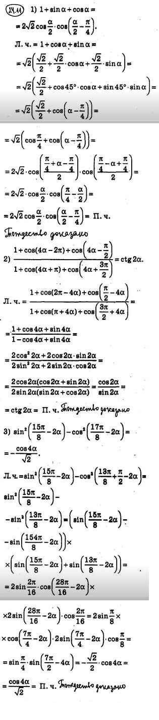 Готовая домашняя работа с ответами по Алгебре за 10 класс Мерзляк, Номировский, Полонский, Якир Учебник Алгоритм успеха Базовый уровень Вентана-граф 2022 ФГОС - §24. Сумма и разность синусов (косинусов) 24.11