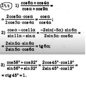 §25. Формулы преобразования произведения тригонометрических функций в сумму