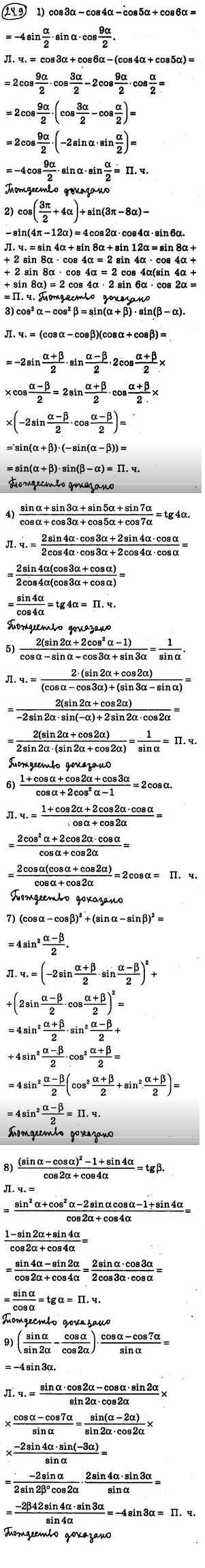 Готовая домашняя работа с ответами по Алгебре за 10 класс Мерзляк, Номировский, Полонский, Якир Учебник Алгоритм успеха Базовый уровень Вентана-граф 2022 ФГОС - §24. Сумма и разность синусов (косинусов) 24.9