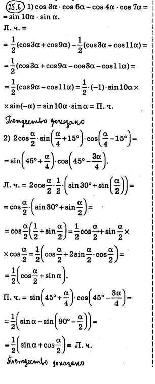 Готовая домашняя работа с ответами по Алгебре за 10 класс Мерзляк, Номировский, Полонский, Якир Учебник Алгоритм успеха Базовый уровень Вентана-граф 2022 ФГОС - §25. Формулы преобразования произведения тригонометрических функций в сумму 25.6