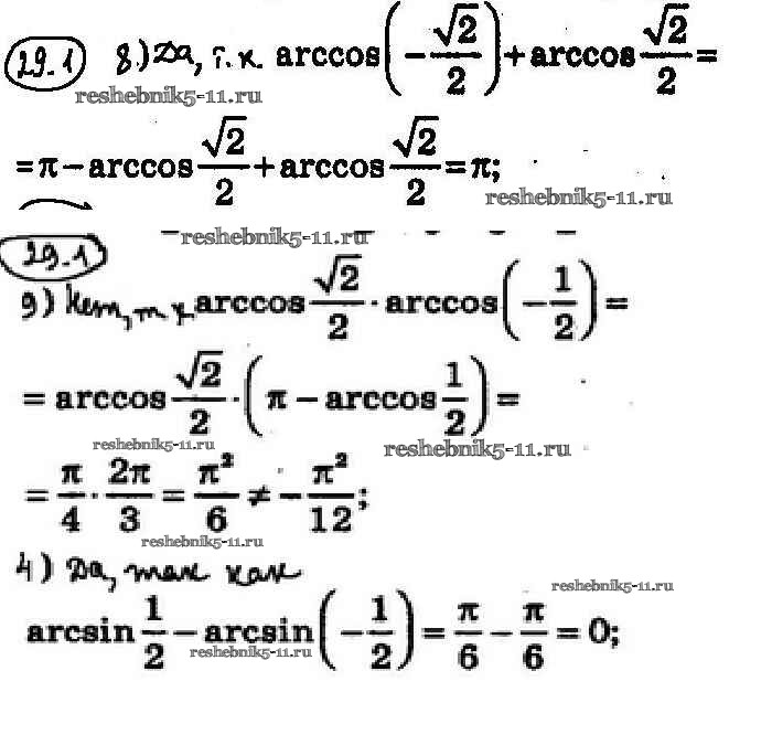 Готовая домашняя работа с ответами по Алгебре за 10 класс Мерзляк, Номировский, Полонский, Якир Учебник Алгоритм успеха Базовый уровень Вентана-граф 2022 ФГОС - §29. Функции y = arccos x, y = arcsin x, y = arctg x и y = arcctg x 29.1