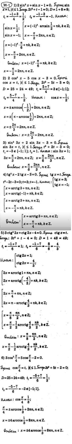 Готовая домашняя работа с ответами по Алгебре за 10 класс Мерзляк, Номировский, Полонский, Якир Учебник Алгоритм успеха Базовый уровень Вентана-граф 2022 ФГОС - §30. Тригонометрические уравнения, сводящиеся к алгебраическим 30.1