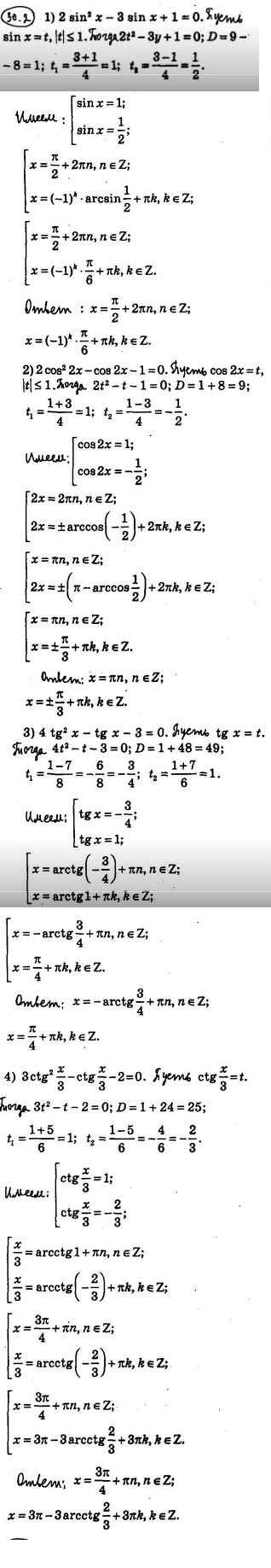 §30. Тригонометрические уравнения, сводящиеся к алгебраическим
