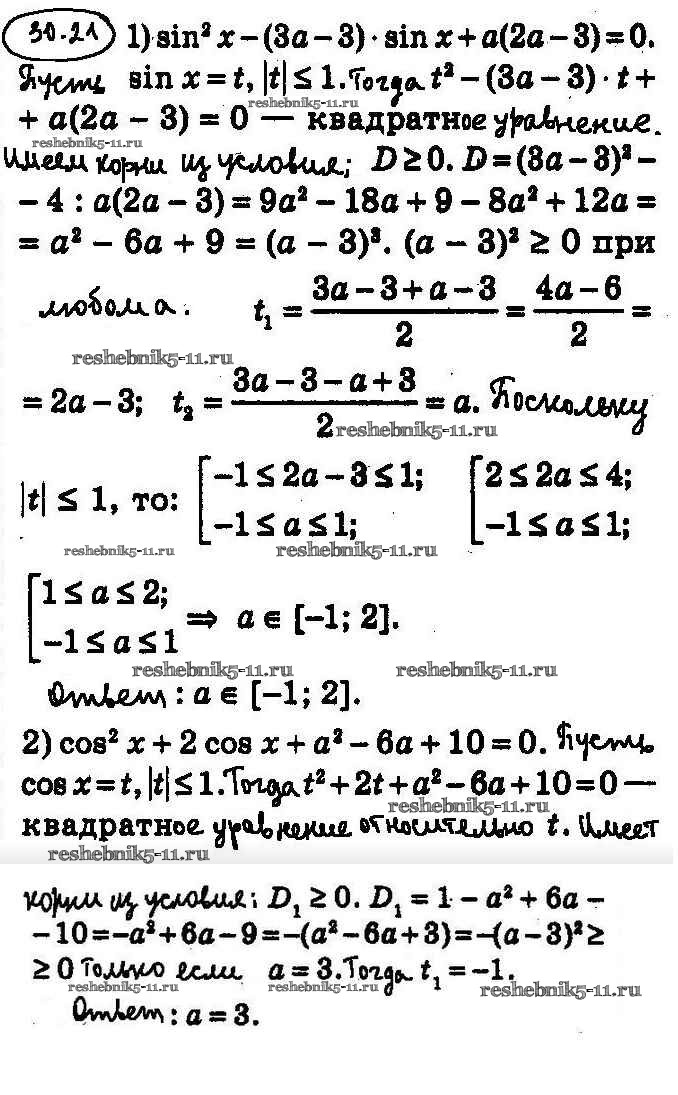 Готовая домашняя работа с ответами по Алгебре за 10 класс Мерзляк, Номировский, Полонский, Якир Учебник Алгоритм успеха Базовый уровень Вентана-граф 2022 ФГОС - §30. Тригонометрические уравнения, сводящиеся к алгебраическим 30.21