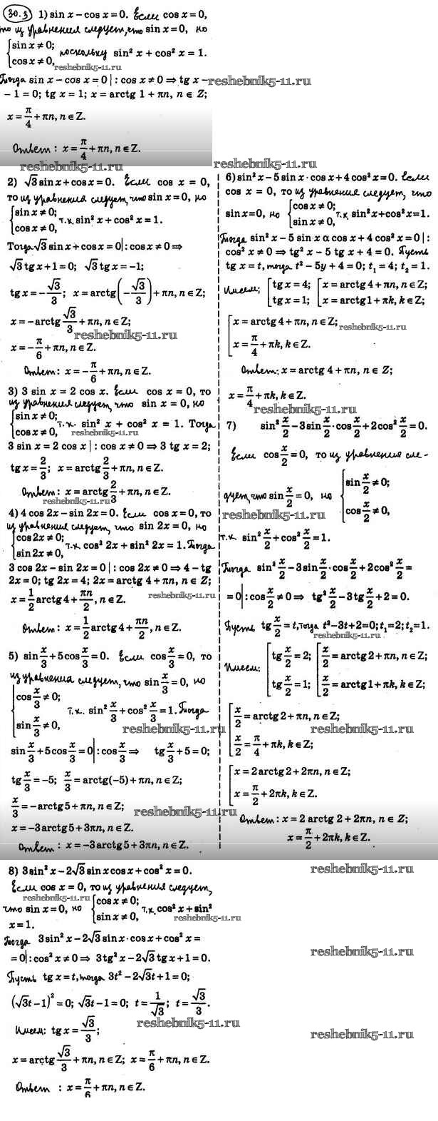 Готовая домашняя работа с ответами по Алгебре за 10 класс Мерзляк, Номировский, Полонский, Якир Учебник Алгоритм успеха Базовый уровень Вентана-граф 2022 ФГОС - §30. Тригонометрические уравнения, сводящиеся к алгебраическим 30.3