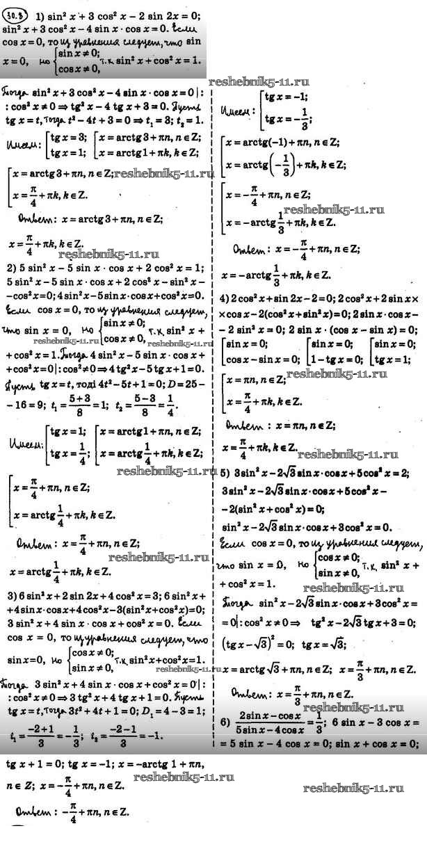 §30. Тригонометрические уравнения, сводящиеся к алгебраическим