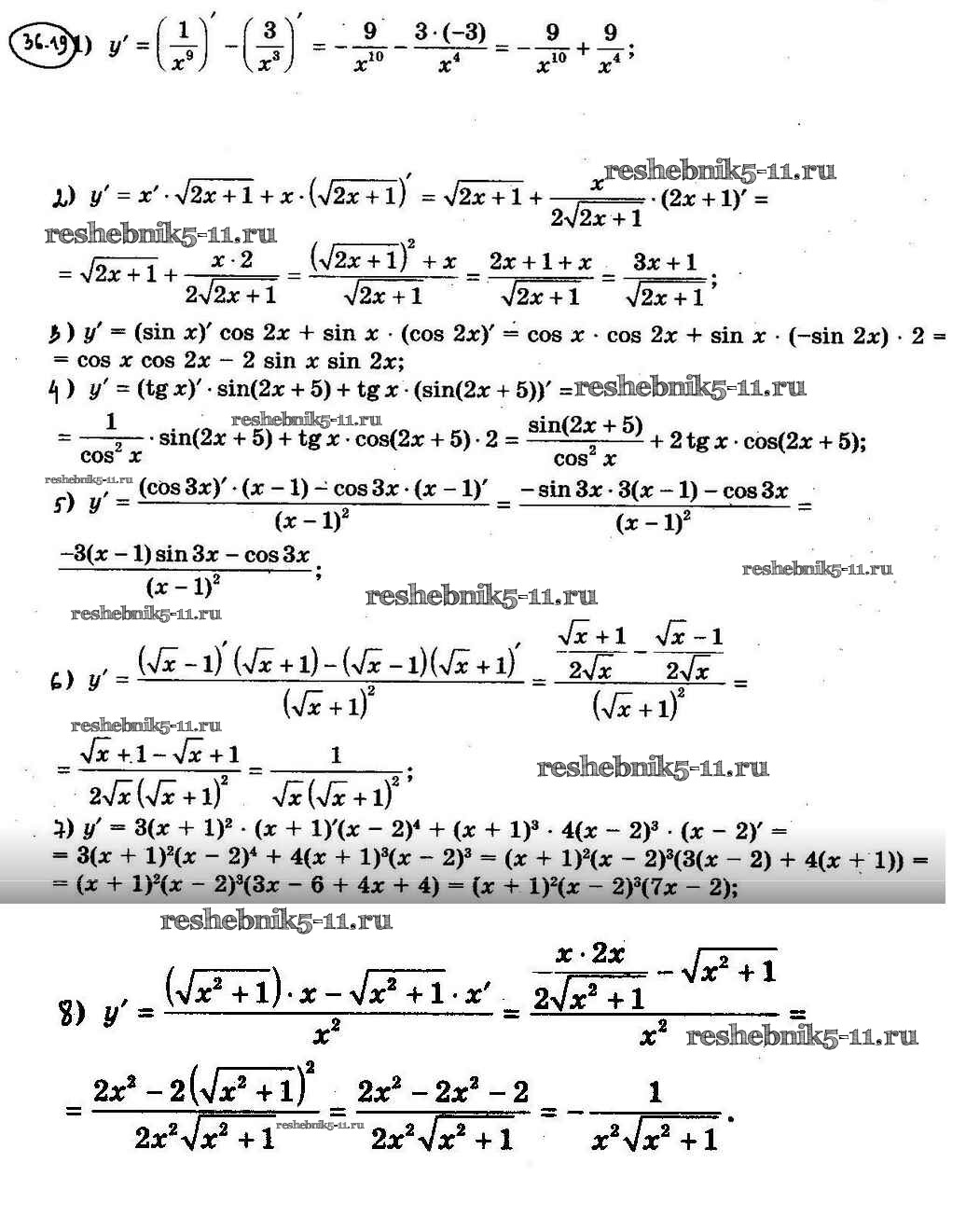 Готовая домашняя работа с ответами по Алгебре за 10 класс Мерзляк, Номировский, Полонский, Якир Учебник Алгоритм успеха Базовый уровень Вентана-граф 2022 ФГОС - §36. Правила вычисления производных 36.19