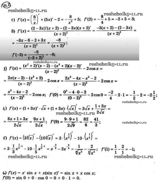 Готовая домашняя работа с ответами по Алгебре за 10 класс Мерзляк, Номировский, Полонский, Якир Учебник Алгоритм успеха Базовый уровень Вентана-граф 2022 ФГОС - §36. Правила вычисления производных 36.7