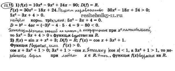 Готовая домашняя работа с ответами по Алгебре за 10 класс Мерзляк, Номировский, Полонский, Якир Учебник Алгоритм успеха Базовый уровень Вентана-граф 2022 ФГОС - §38. Признаки возрастания и убывания функции 38.11