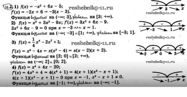 Готовая домашняя работа с ответами по Алгебре за 10 класс Мерзляк, Номировский, Полонский, Якир Учебник Алгоритм успеха Базовый уровень Вентана-граф 2022 ФГОС - §38. Признаки возрастания и убывания функции 38.2