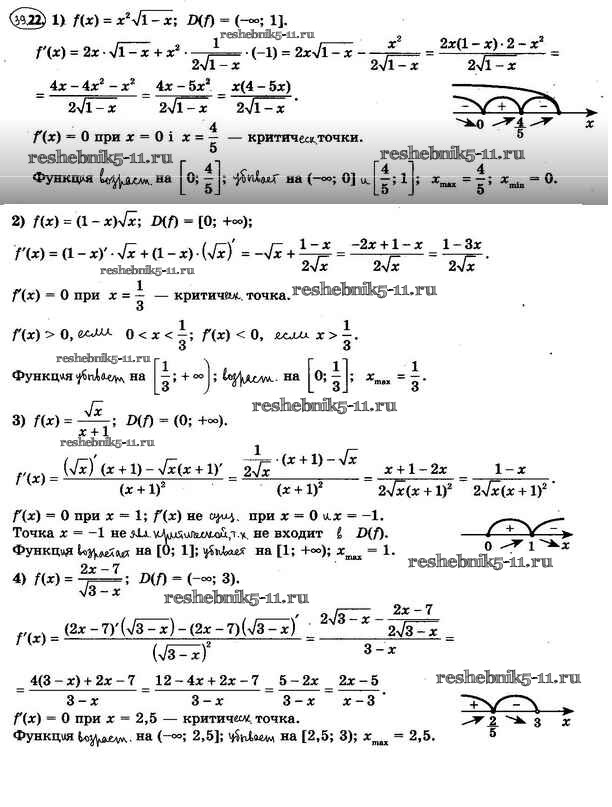 Готовая домашняя работа с ответами по Алгебре за 10 класс Мерзляк, Номировский, Полонский, Якир Учебник Алгоритм успеха Базовый уровень Вентана-граф 2022 ФГОС - §39. Точки экстремума функции 39.22