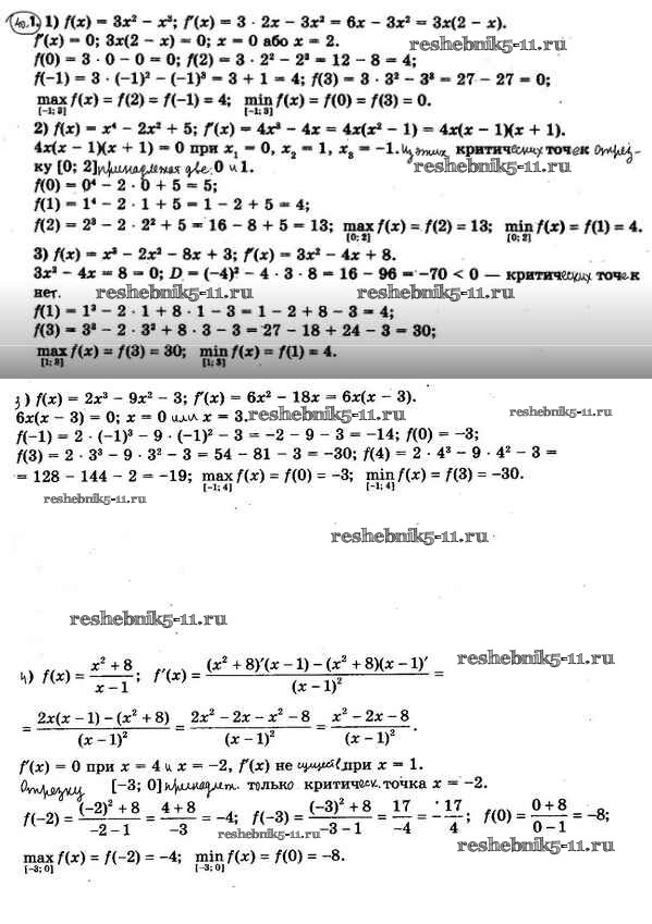 Готовая домашняя работа с ответами по Алгебре за 10 класс Мерзляк, Номировский, Полонский, Якир Учебник Алгоритм успеха Базовый уровень Вентана-граф 2022 ФГОС - §40. Применение производной при нахождении наибольшего и наименьшего значений функции 40.1