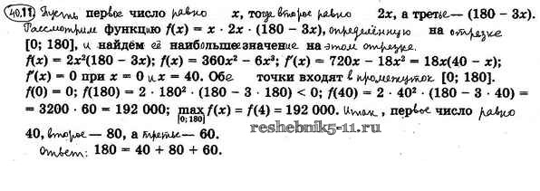 Готовая домашняя работа с ответами по Алгебре за 10 класс Мерзляк, Номировский, Полонский, Якир Учебник Алгоритм успеха Базовый уровень Вентана-граф 2022 ФГОС - §40. Применение производной при нахождении наибольшего и наименьшего значений функции 40.11