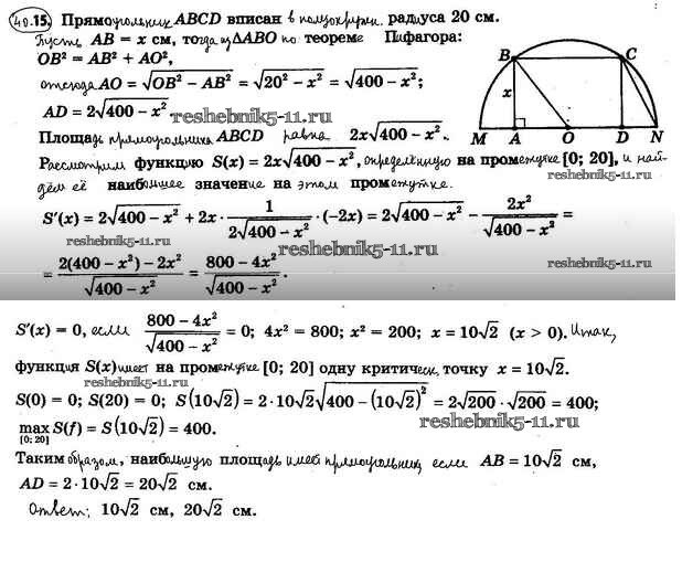 Готовая домашняя работа с ответами по Алгебре за 10 класс Мерзляк, Номировский, Полонский, Якир Учебник Алгоритм успеха Базовый уровень Вентана-граф 2022 ФГОС - §40. Применение производной при нахождении наибольшего и наименьшего значений функции 40.15