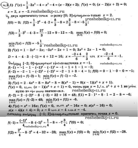 Готовая домашняя работа с ответами по Алгебре за 10 класс Мерзляк, Номировский, Полонский, Якир Учебник Алгоритм успеха Базовый уровень Вентана-граф 2022 ФГОС - §40. Применение производной при нахождении наибольшего и наименьшего значений функции 40.2